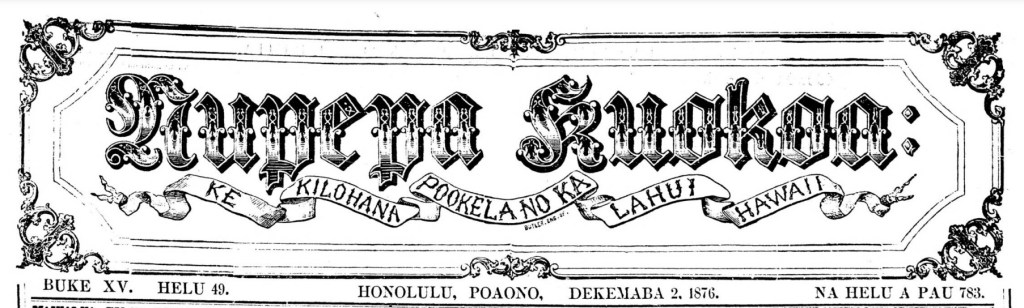 Heading of a Hawaiian newspaper, Ka Nupepa Kūʻokoʻa, published in Honolulu from 1861 to 1927. (Screenshot by the author via the Papakilo database.)