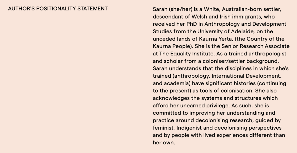 Homan’s (2023) Positionality Statement vis-à-vis her anthropological research and writing.